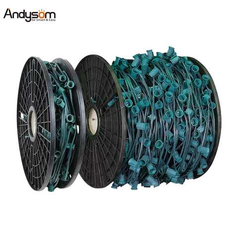 Andysom 탑 500 1000 Foot C7 C9 ST38 빈 소켓 크리스마스 휴일 문자열 빛 코드 스풀 야외 휴일 장식